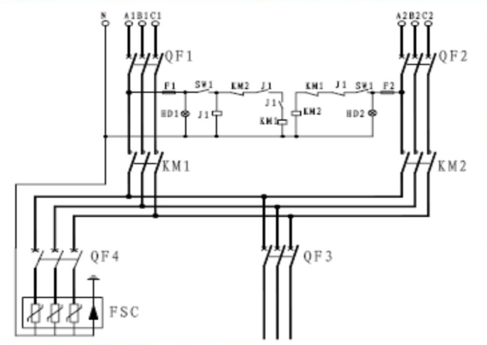 2、交流接觸器通過機械聯(lián)鎖和電氣互鎖兩種方式來防止兩路交流電源同時接入,以保證交流供電可靠運行。