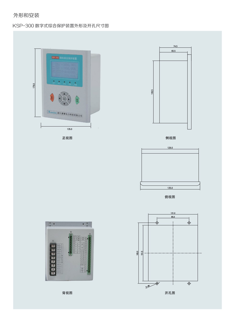 KSP-300 數(shù)字式綜合保護裝置是我公司為適應(yīng)我國電氣成套事業(yè) 發(fā) 展的需要,積累多年電力自動化產(chǎn)品開發(fā)經(jīng)驗,運用新技術(shù)、新工 藝 而推出的一款經(jīng)濟型綜合保護裝置。裝置結(jié)構(gòu)設(shè)計緊湊、體積小 巧,交 直流電源通用,可滿足 10KV 及以下電壓等級進(jìn)出線、廠用 變等保護測 控功能。